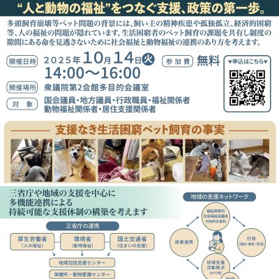 — 人と動物、両方の幸せを支える仕組みを考える … [もっと読む...] about 🐾 「生活困窮ペット飼育者支援に関する院内勉強会」に参加して